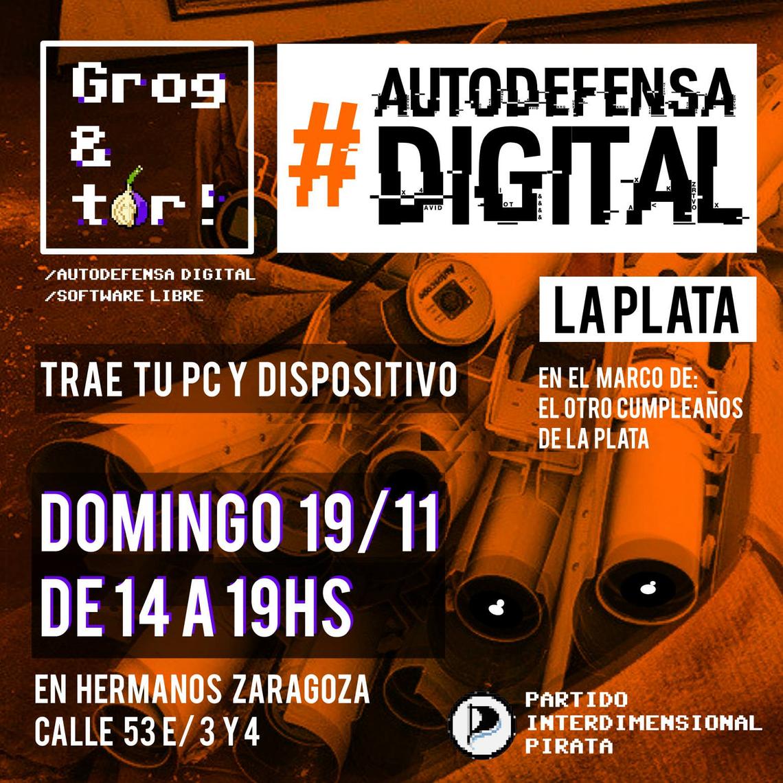 Se realizará en La Plata el primer encuentro sobre autodefensa digital, organizado por el Partido Interdimensional Pirata en el marco de El Otro Cumpleaños de La Plata. Será el domingo 19 de noviembre entre las 14 y las 19. La entrada es libre y gratuita y no es necesario tener conocimientos previos para participar.
